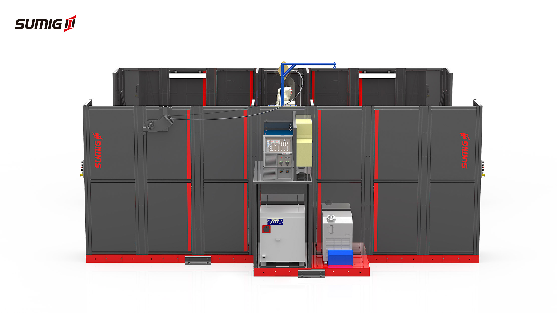 A célula MODUCELL LD-3000 conta com duas estações de trabalho e permite espaço amplo para soldagem de peças médias e grandes. Além disso, pode ser incorporado monitor para visualizar a tela doTeach Pendant com mais detalhes. Com cortinas internas ou externas,é indicada para soldagem de peças cilíndricas, tubulação, auto-peças, entre outros.